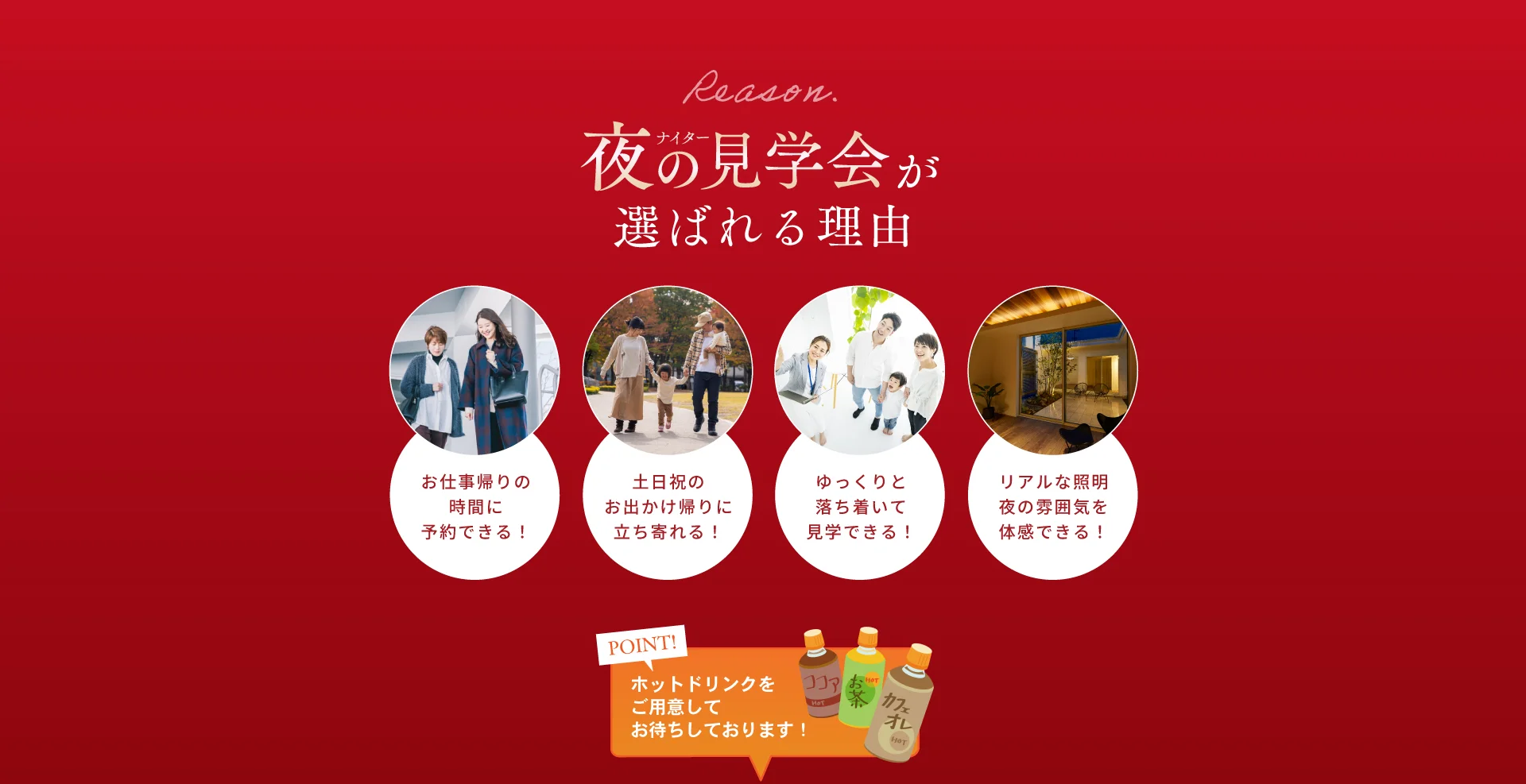 - WEB予約していただくと確認の連絡を取らさせていただきます。確認が取れた時点でWEB予約完了となり、ご来場特典の対象となります。