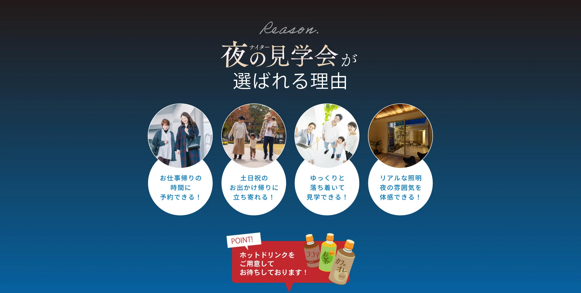 - WEB予約していただくと確認の連絡を取らさせていただきます。確認が取れた時点でWEB予約完了となり、ご来場特典の対象となります。